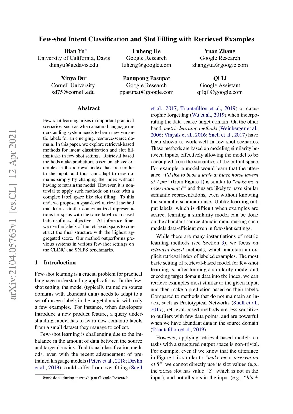 Few-shot Intent Classification and Slot Filling with Retrieved Examples