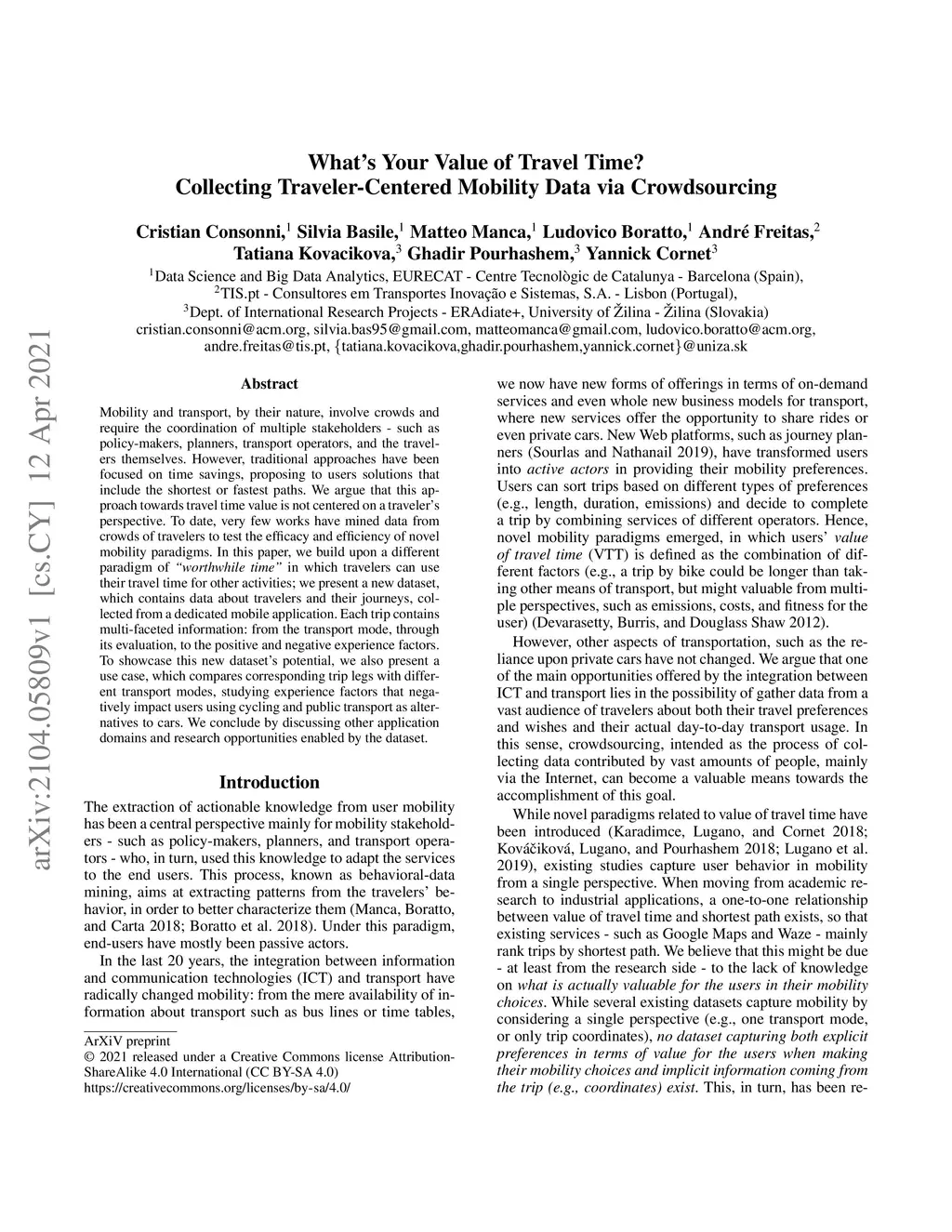Mobility and transport, by their nature, involve crowds and require the coordination of multiple stakeholders - such as policy-makers, planners, transport operators, and the travelers themselves. However, traditional approaches have been focused on time savings, proposing to users solutions that include the shortest or fastest paths. We argue that this approach towards travel time value is not centered on a traveler's perspective. To date, very few works have mined data from crowds of travelers to test the efficacy and efficiency of novel mobility paradigms. In this paper, we build upon a different paradigm of worthwhile time in which travelers can use their travel time for other activities; we present a new dataset, which contains data about travelers and their journeys, collected from a dedicated mobile application. Each trip contains multi-faceted information: from the transport mode, through its evaluation, to the positive and negative experience factors. To showcase this new dataset's potential, we also present a use case, which compares corresponding trip legs with different transport modes, studying experience factors that negatively impact users using cycling and public transport as alternatives to cars. We conclude by discussing other application domains and research opportunities enabled by the dataset.