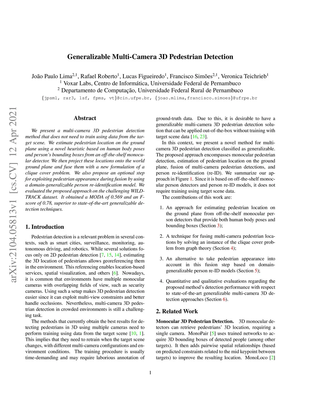 Generalizable Multi-Camera 3D Pedestrian Detection