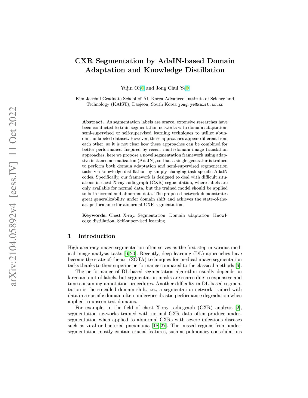 CXR Segmentation by AdaIN-based Domain Adaptation and Knowledge
