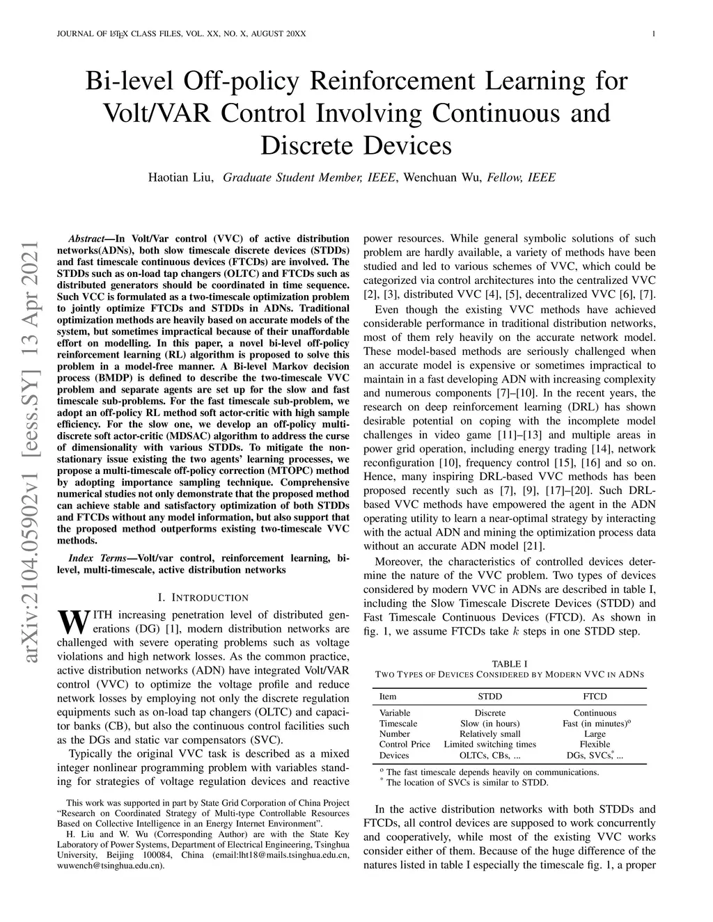 Bi-level Off-policy Reinforcement Learning for Volt/VAR Control