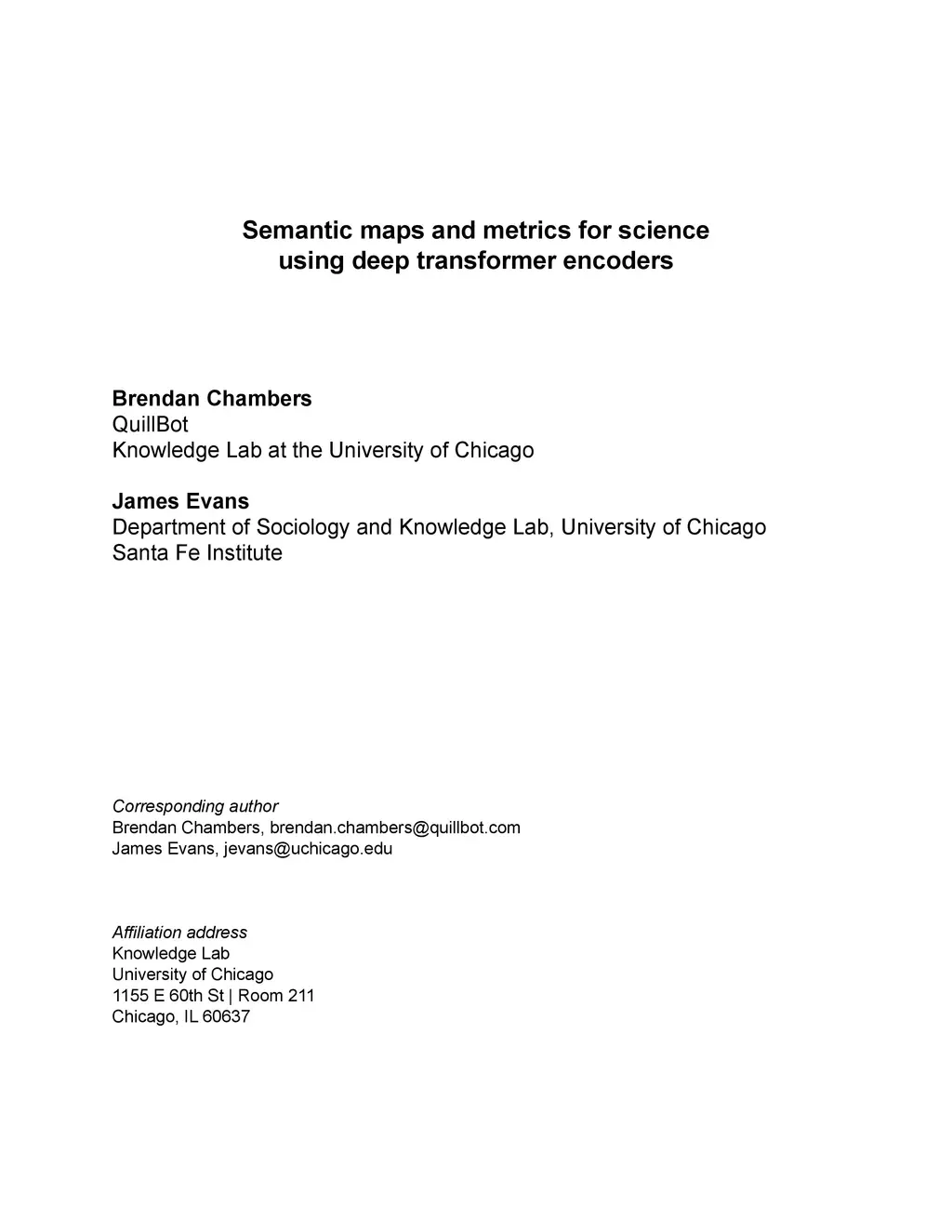 The growing deluge of scientific publications demands text analysis tools that can help scientists and policy-makers navigate, forecast and beneficially guide scientific research. Recent advances in natural language understanding driven by deep transformer networks offer new possibilities for mapping science. Because the same surface text can take on multiple and sometimes contradictory specialized senses across distinct research communities, sensitivity to context is critical for infometric applications. Transformer embedding models such as BERT capture shades of association and connotation that vary across the different linguistic contexts of any particular word or span of text. Here we report a procedure for encoding scientific documents with these tools, measuring their improvement over static word embeddings in a nearest-neighbor retrieval task. We find discriminability of contextual representations is strongly influenced by choice of pooling strategy for summarizing the high-dimensional network activations. Importantly, we note that fundamentals such as domain-matched training data are more important than state-of-the-art NLP tools. Yet state-of-the-art models did offer significant gains. The best approach we investigated combined domain-matched pretraining, sound pooling, and state-of-the-art deep transformer network encoders. Finally, with the goal of leveraging contextual representations from deep encoders, we present a range of measurements for understanding and forecasting research communities in science.
