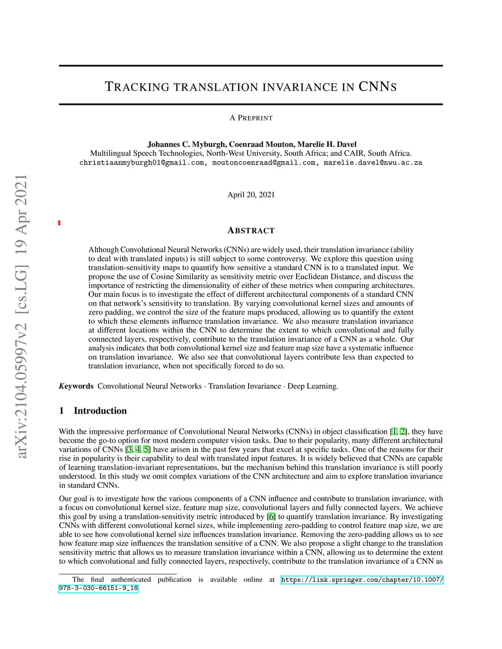 Tracking translation invariance in CNNs