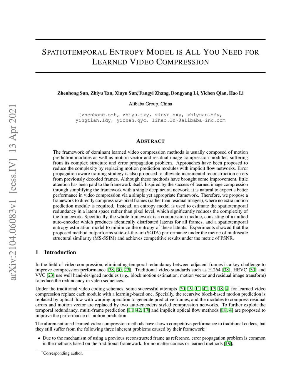 Spatiotemporal Entropy Model is All You Need for Learned Video