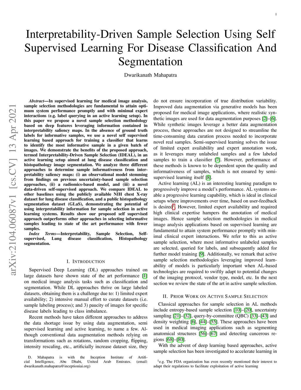 Interpretability-Driven Sample Selection Using Self Supervised Learning