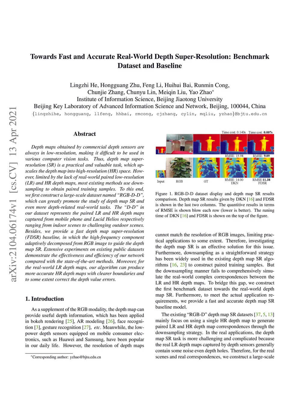 Towards Fast and Accurate Real-World Depth Super-Resolution: Benchmark