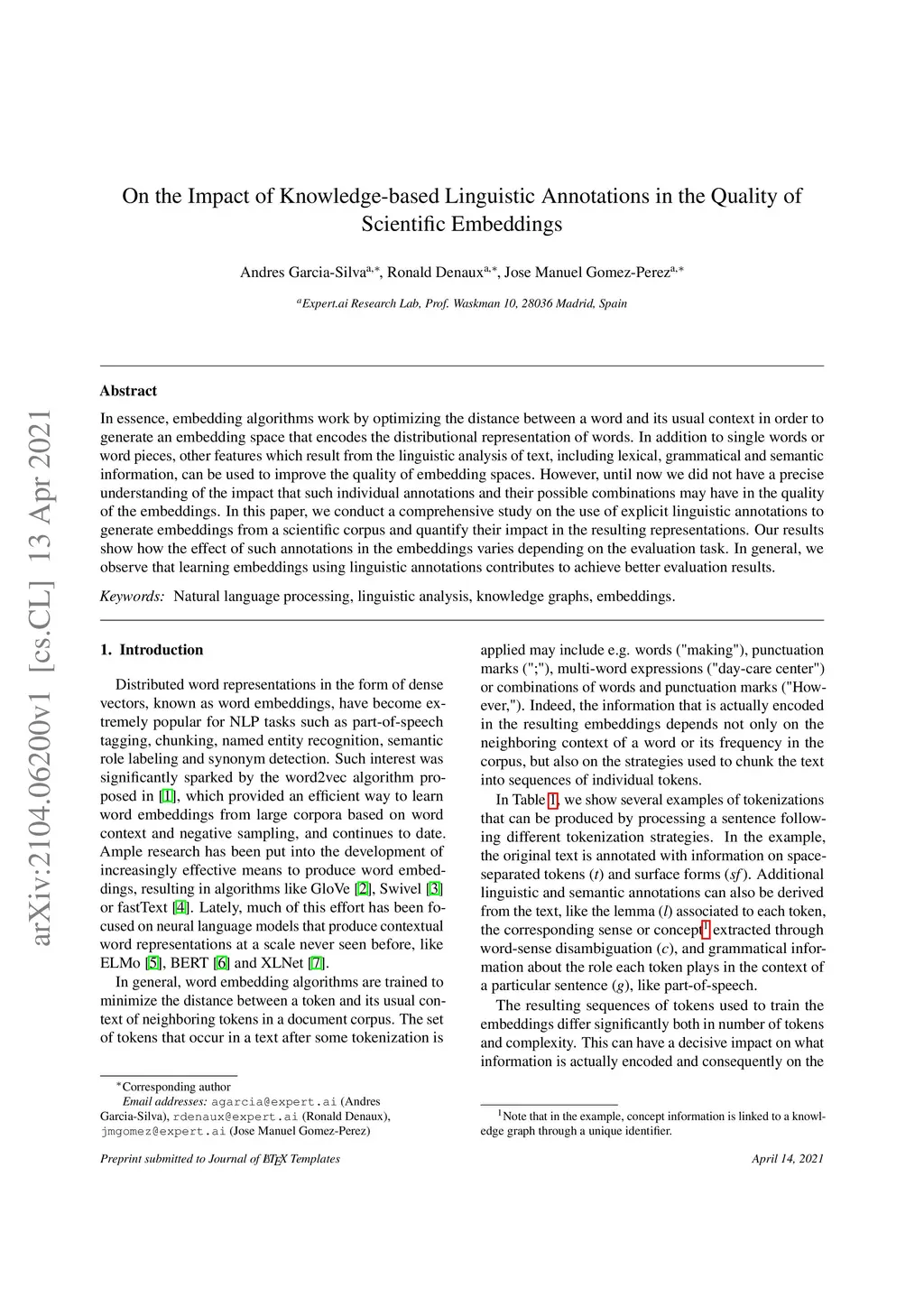 In essence, embedding algorithms work by optimizing the distance between a word and its usual context in order to generate an embedding space that encodes the distributional representation of words. In addition to single words or word pieces, other features which result from the linguistic analysis of text, including lexical, grammatical and semantic information, can be used to improve the quality of embedding spaces. However, until now we did not have a precise understanding of the impact that such individual annotations and their possible combinations may have in the quality of the embeddings. In this paper, we conduct a comprehensive study on the use of explicit linguistic annotations to generate embeddings from a scientific corpus and quantify their impact in the resulting representations. Our results show how the effect of such annotations in the embeddings varies depending on the evaluation task. In general, we observe that learning embeddings using linguistic annotations contributes to achieve better evaluation results.
