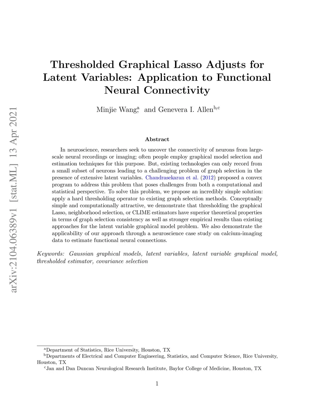 In neuroscience, researchers seek to uncover the connectivity of neurons from large-scale neural recordings or imaging; often people employ graphical model selection and estimation techniques for this purpose. But, existing technologies can only record from a small subset of neurons leading to a challenging problem of graph selection in the presence of extensive latent variables. Chandrasekaran et al. (2012) proposed a convex program to address this problem that poses challenges from both a computational and statistical perspective. To solve this problem, we propose an incredibly simple solution: apply a hard thresholding operator to existing graph selection methods. Conceptually simple and computationally attractive, we demonstrate that thresholding the graphical Lasso, neighborhood selection, or CLIME estimators have superior theoretical properties in terms of graph selection consistency as well as stronger empirical results than existing approaches for the latent variable graphical model problem. We also demonstrate the applicability of our approach through a neuroscience case study on calcium-imaging data to estimate functional neural connections.