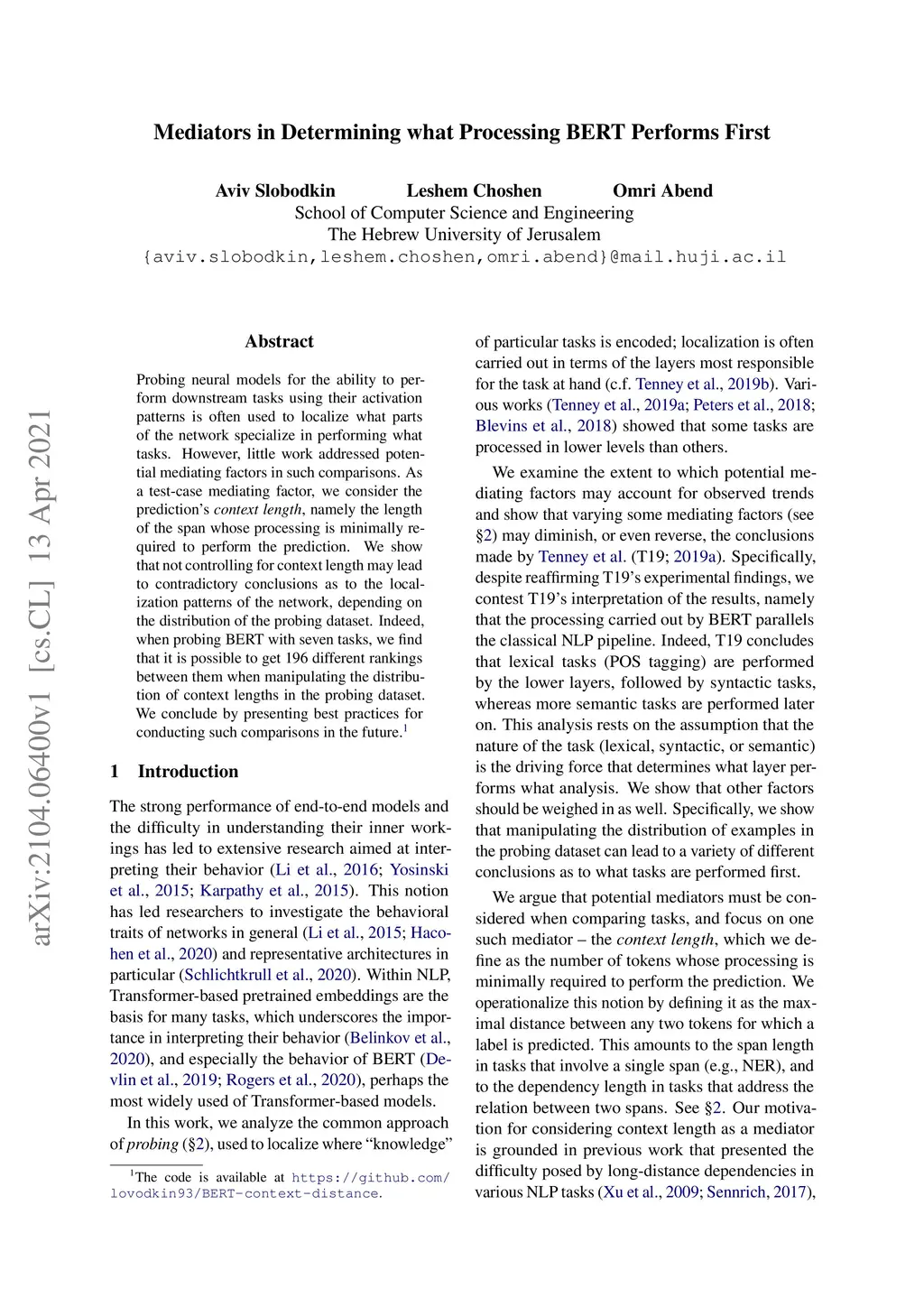 Mediators in Determining what Processing BERT Performs First