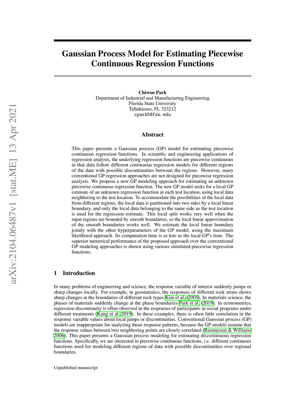 Gaussian Process Model for Estimating Piecewise Continuous Regression