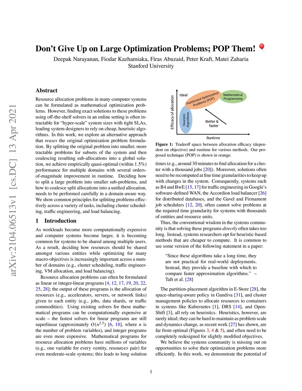 Resource allocation problems in many computer systems can be formulated as mathematical optimization problems. However, finding exact solutions to these problems using off-the-shelf solvers in an online setting is often intractable for "hyper-scale" system sizes with tight SLAs, leading system designers to rely on cheap, heuristic algorithms. In this work, we explore an alternative approach that reuses the original optimization problem formulation. By splitting the original problem into smaller, more tractable problems for subsets of the system and then coalescing resulting sub-allocations into a global solution, we achieve empirically quasi-optimal (within 1.5%) performance for multiple domains with several orders-of-magnitude improvement in runtime. Deciding how to split a large problem into smaller sub-problems, and how to coalesce split allocations into a unified allocation, needs to be performed carefully in a domain-aware way. We show common principles for splitting problems effectively across a variety of tasks, including cluster scheduling, traffic engineering, and load balancing.