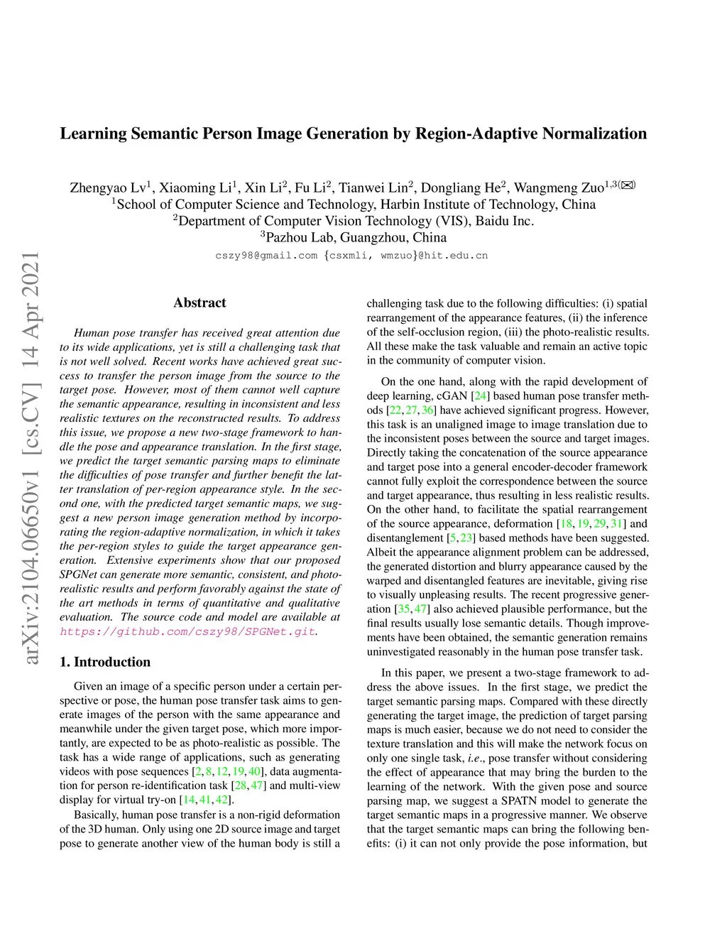 Learning Semantic Person Image Generation by Region-Adaptive
