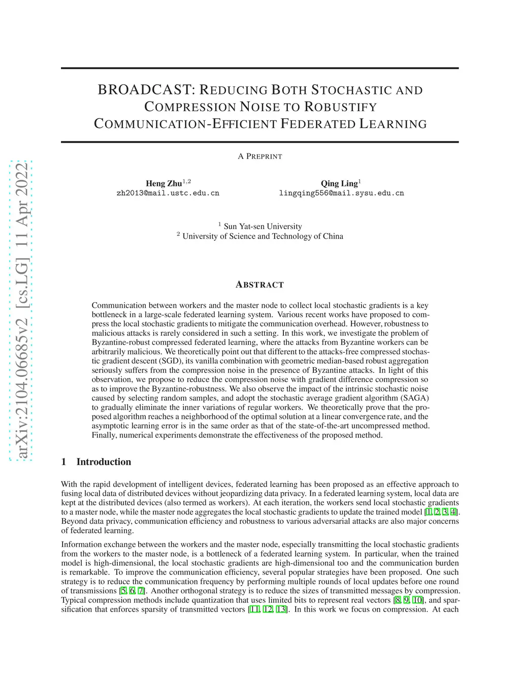 BROADCAST: Reducing Both Stochastic and Compression Noise to Robustify