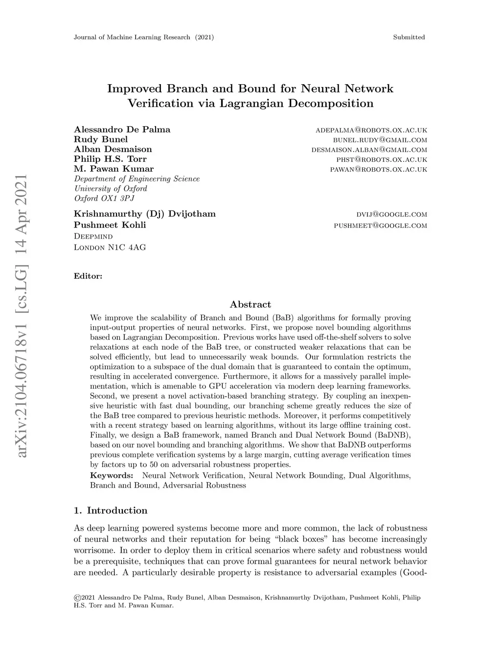 We improve the scalability of Branch and Bound (BaB) algorithms for formally proving input-output properties of neural networks. First, we propose novel bounding algorithms based on Lagrangian Decomposition. Previous works have used off-the-shelf solvers to solve relaxations at each node of the BaB tree, or constructed weaker relaxations that can be solved efficiently, but lead to unnecessarily weak bounds. Our formulation restricts the optimization to a subspace of the dual domain that is guaranteed to contain the optimum, resulting in accelerated convergence. Furthermore, it allows for a massively parallel implementation, which is amenable to GPU acceleration via modern deep learning frameworks. Second, we present a novel activation-based branching strategy. By coupling an inexpensive heuristic with fast dual bounding, our branching scheme greatly reduces the size of the BaB tree compared to previous heuristic methods. Moreover, it performs competitively with a recent strategy based on learning algorithms, without its large offline training cost. Finally, we design a BaB framework, named Branch and Dual Network Bound (BaDNB), based on our novel bounding and branching algorithms. We show that BaDNB outperforms previous complete verification systems by a large margin, cutting average verification times by factors up to 50 on adversarial robustness properties.