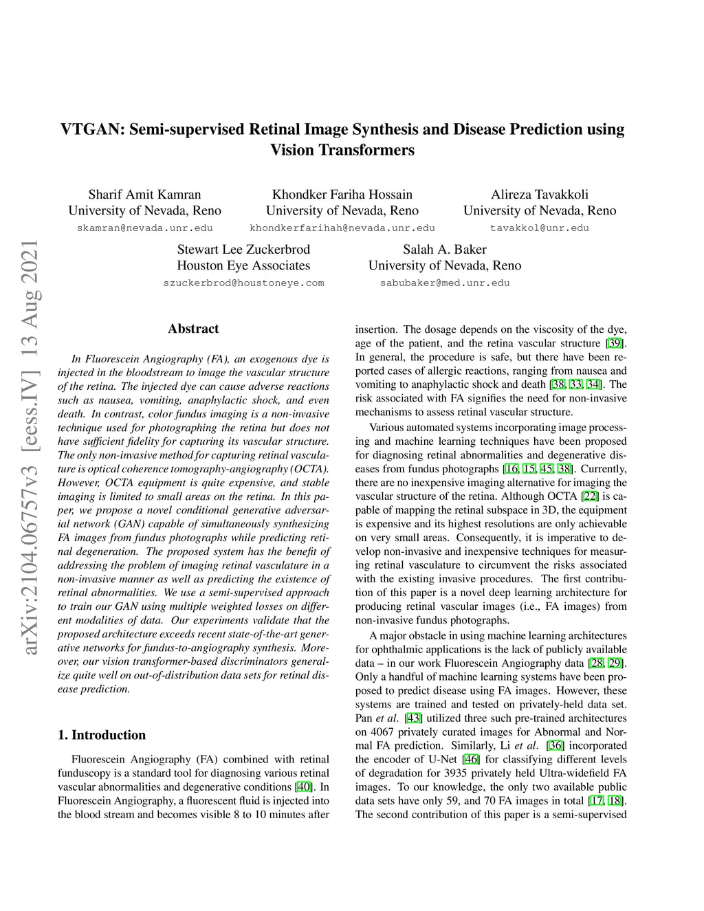 VTGAN: Semi-supervised Retinal Image Synthesis and Disease Prediction using Vision Transformers
