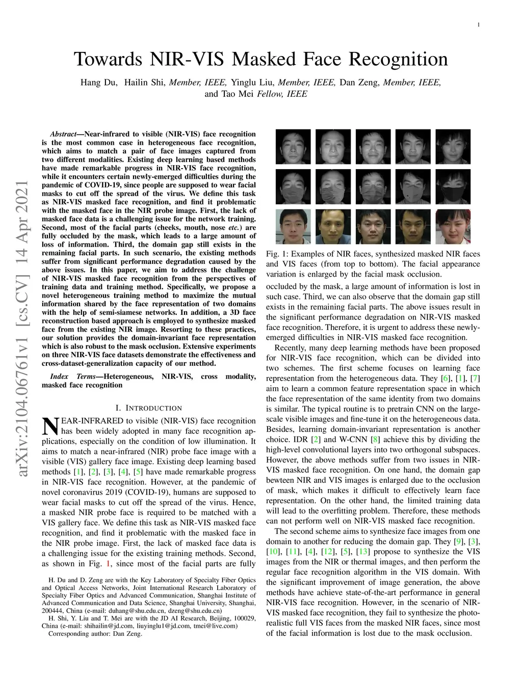 Towards NIR-VIS Masked Face Recognition