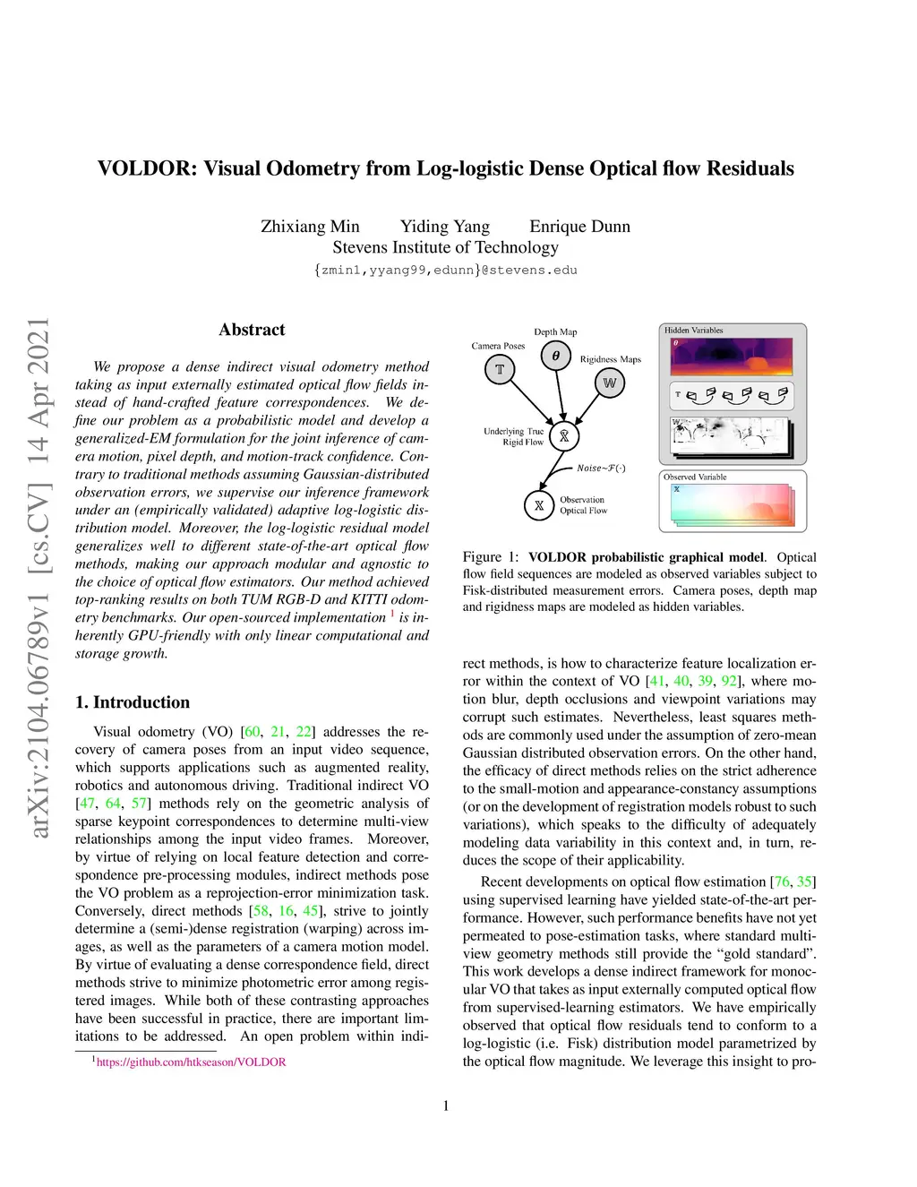 VOLDOR: Visual Odometry from Log-logistic Dense Optical flow Residuals