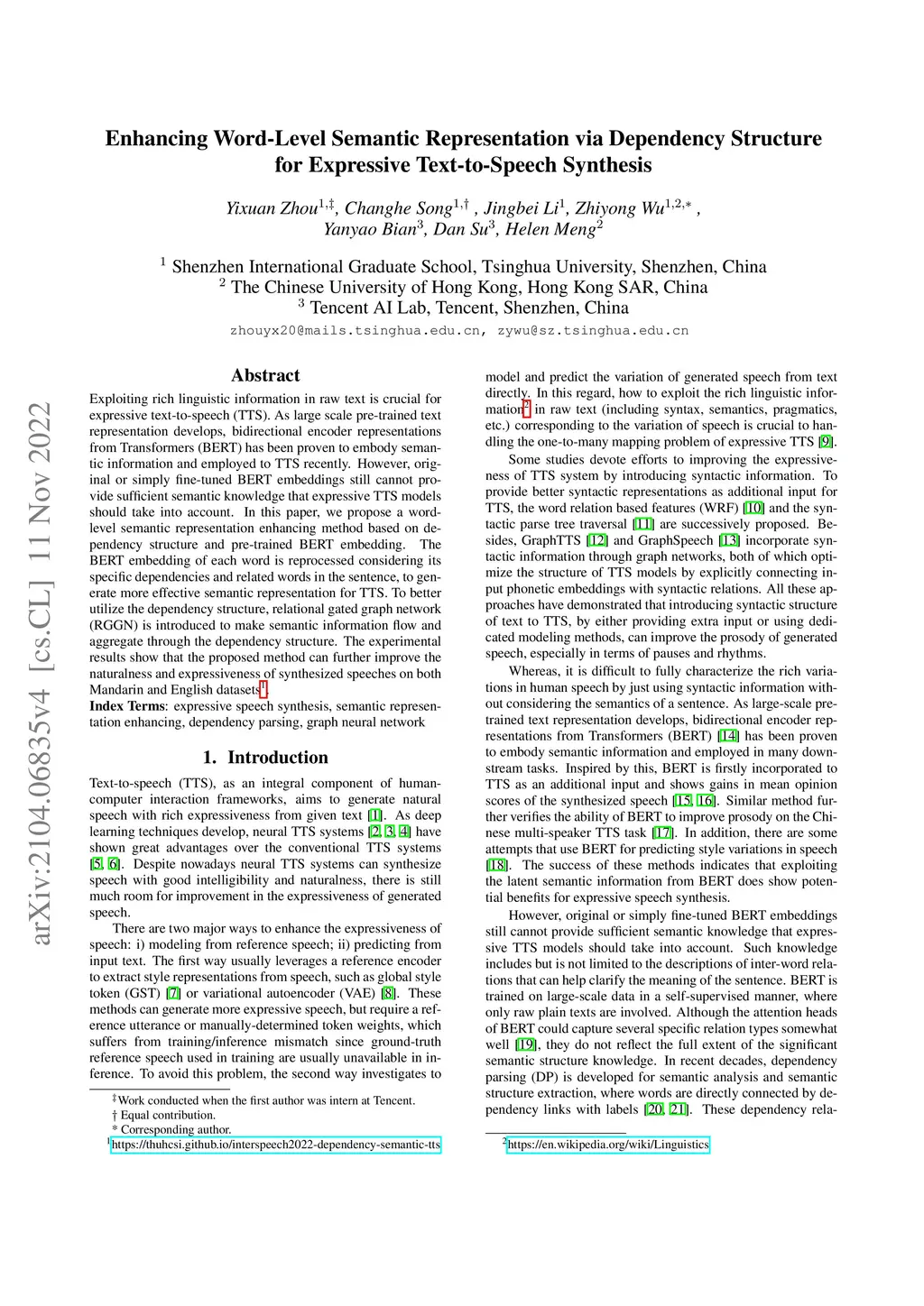 Exploiting rich linguistic information in raw text is crucial for expressive text-to-speech (TTS). As large scale pre-trained text representation develops, bidirectional encoder representations from Transformers (BERT) has been proven to embody semantic information and employed to TTS recently. However, original or simply fine-tuned BERT embeddings still cannot provide sufficient semantic knowledge that expressive TTS models should take into account. In this paper, we propose a word-level semantic representation enhancing method based on dependency structure and pre-trained BERT embedding. The BERT embedding of each word is reprocessed considering its specific dependencies and related words in the sentence, to generate more effective semantic representation for TTS. To better utilize the dependency structure, relational gated graph network (RGGN) is introduced to make semantic information flow and aggregate through the dependency structure. The experimental results show that the proposed method can further improve the naturalness and expressiveness of synthesized speeches on both Mandarin and English datasets.