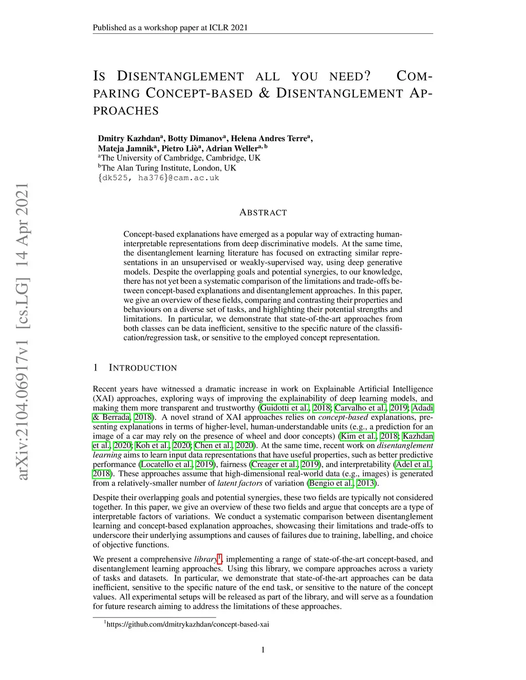 Concept-based explanations have emerged as a popular way of extracting human-interpretable representations from deep discriminative models. At the same time, the disentanglement learning literature has focused on extracting similar representations in an unsupervised or weakly-supervised way, using deep generative models. Despite the overlapping goals and potential synergies, to our knowledge, there has not yet been a systematic comparison of the limitations and trade-offs between concept-based explanations and disentanglement approaches. In this paper, we give an overview of these fields, comparing and contrasting their properties and behaviours on a diverse set of tasks, and highlighting their potential strengths and limitations. In particular, we demonstrate that state-of-the-art approaches from both classes can be data inefficient, sensitive to the specific nature of the classification/regression task, or sensitive to the employed concept representation.