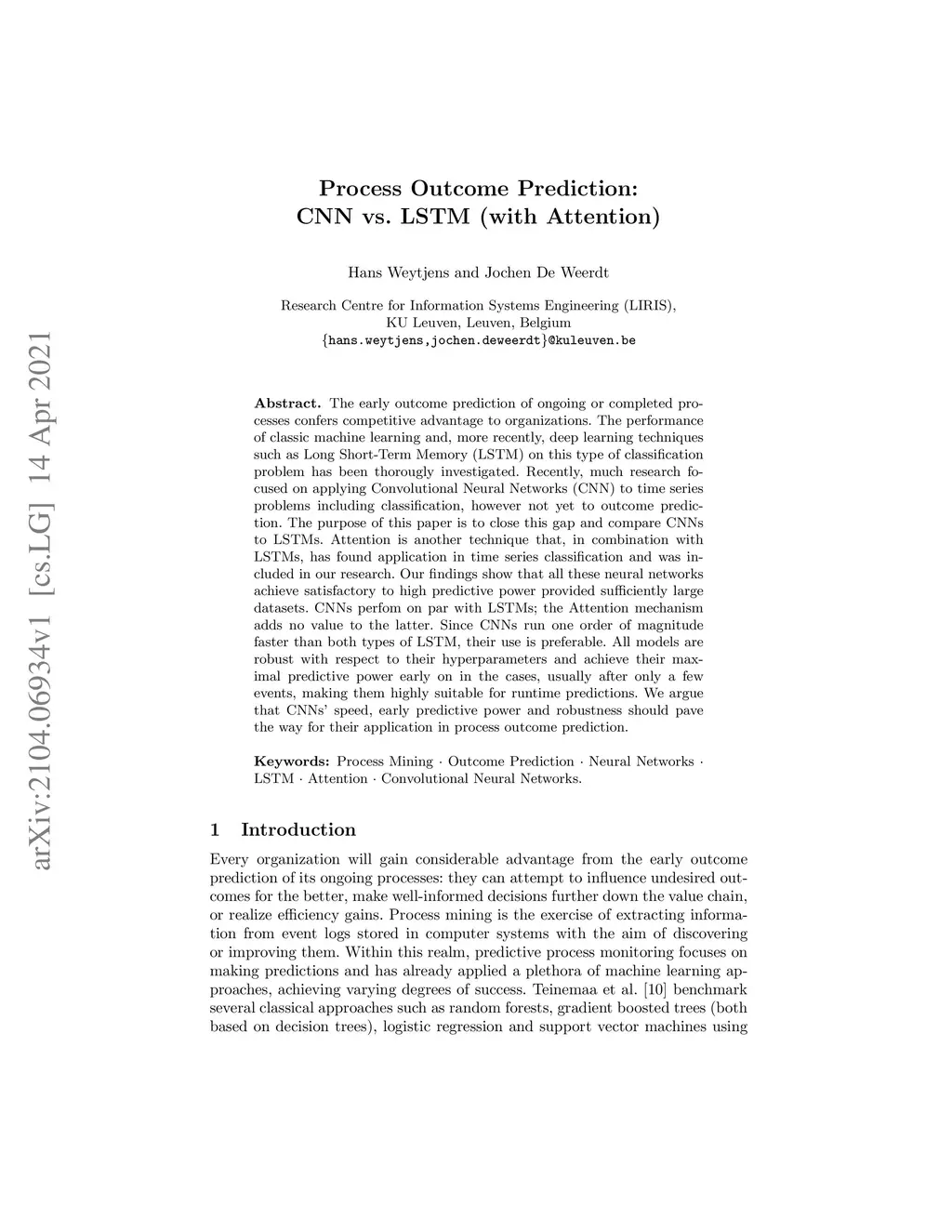 Process Outcome Prediction: CNN vs. LSTM (with Attention)