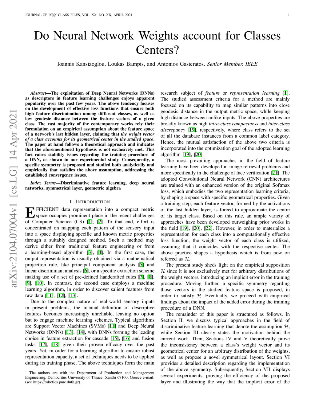 The exploitation of Deep Neural Networks (DNNs) as descriptors in feature learning challenges enjoys apparent popularity over the past few years. The above tendency focuses on the development of effective loss functions that ensure both high feature discrimination among different classes, as well as low geodesic distance between the feature vectors of a given class. The vast majority of the contemporary works rely their formulation on an empirical assumption about the feature space of a network's last hidden layer, claiming that the weight vector of a class accounts for its geometrical center in the studied space. The paper at hand follows a theoretical approach and indicates that the aforementioned hypothesis is not exclusively met. This fact raises stability issues regarding the training procedure of a DNN, as shown in our experimental study. Consequently, a specific symmetry is proposed and studied both analytically and empirically that satisfies the above assumption, addressing the established convergence issues.
