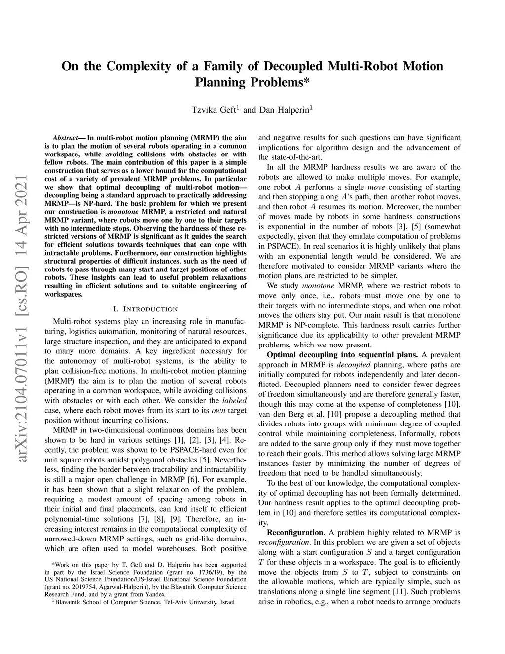 On the Complexity of a Family of Decoupled Multi-Robot Motion Planning