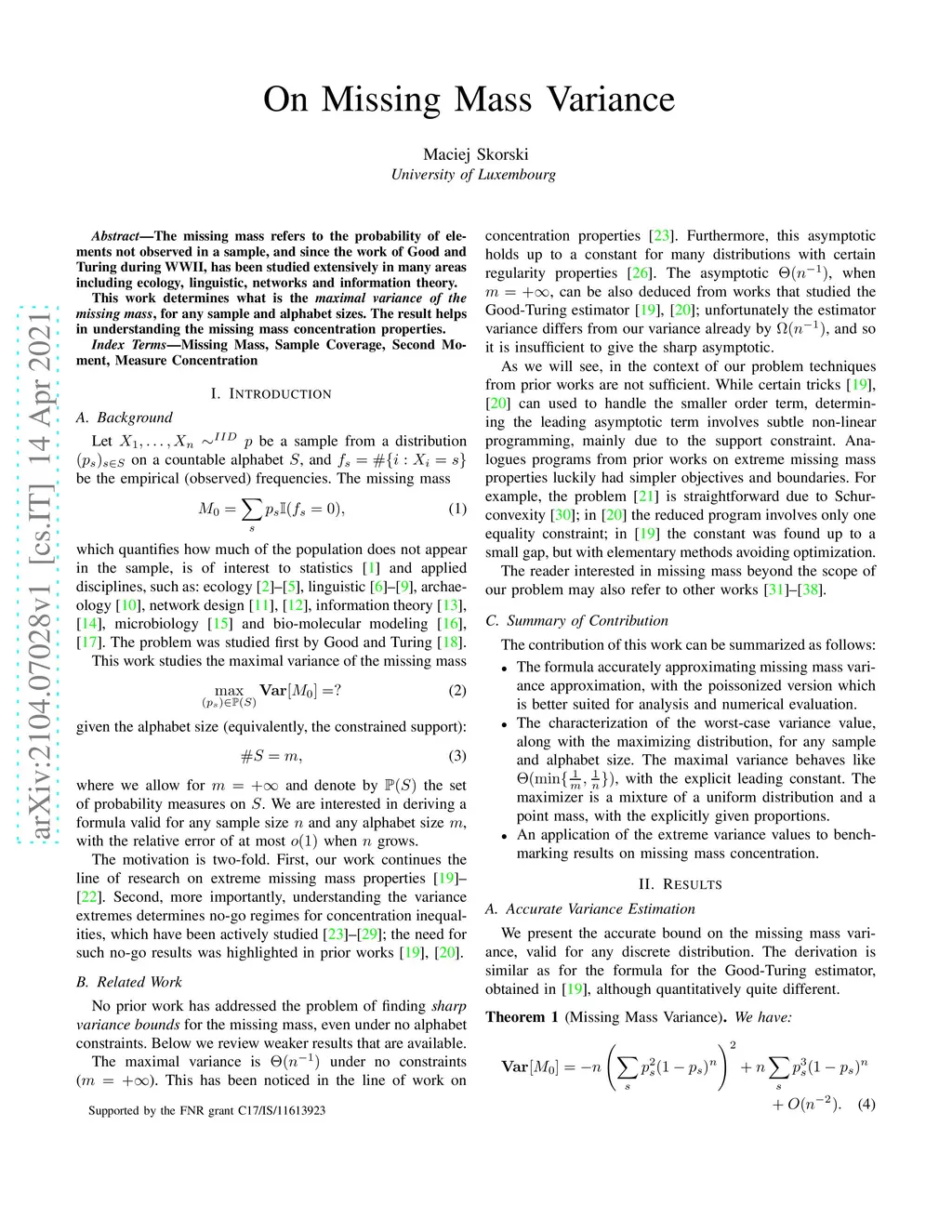 On Missing Mass Variance