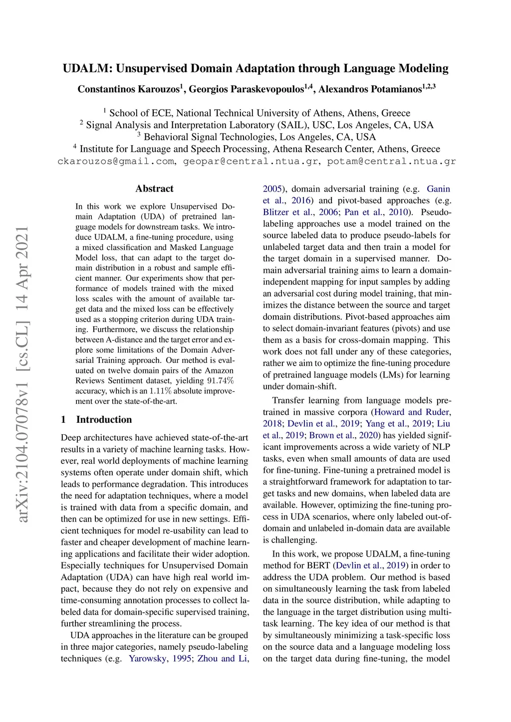 UDALM: Unsupervised Domain Adaptation through Language Modeling