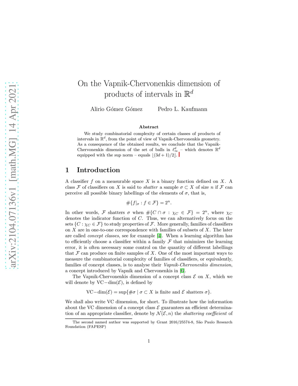 On the Vapnik-Chervonenkis dimension of products of intervals in