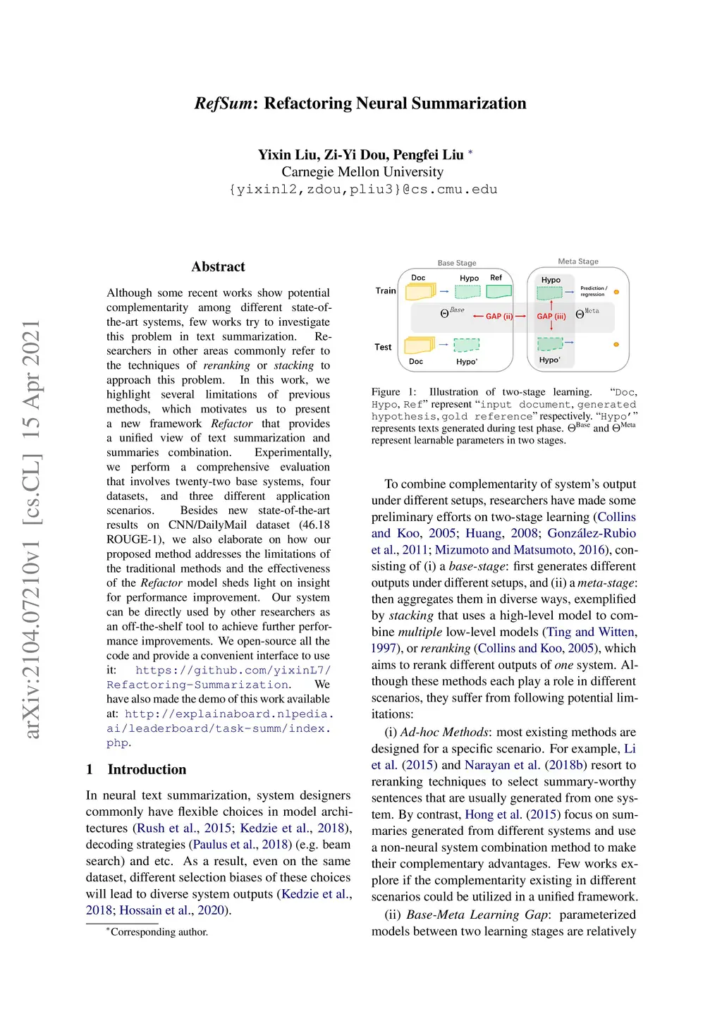 RefSum: Refactoring Neural Summarization