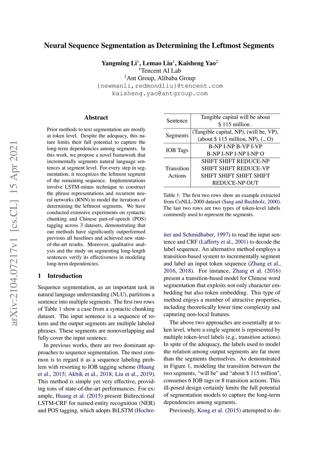 Neural Sequence Segmentation as Determining the Leftmost Segments