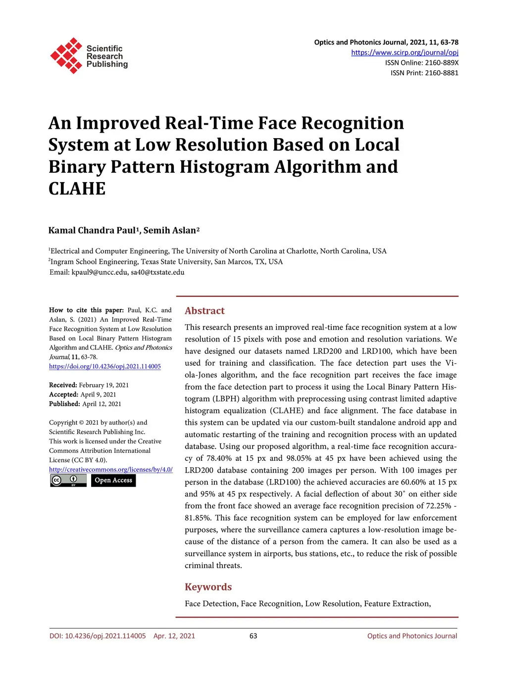 Local Binary Pattern Histogram Algorithm and CLAHE