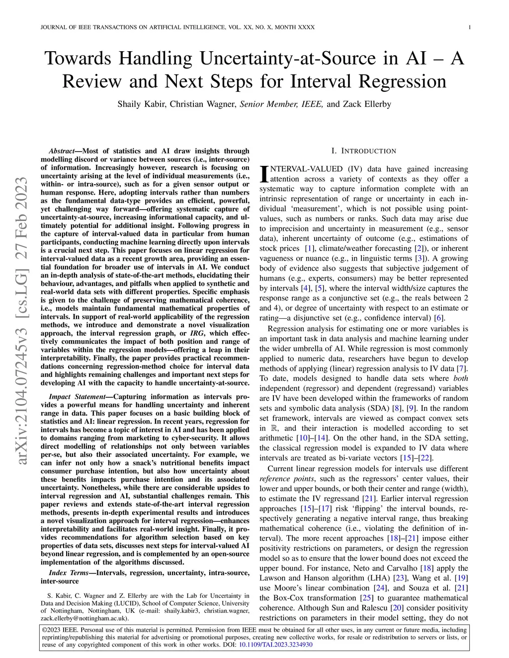 Most of statistics and AI draw insights through modelling discord or variance between sources of information (i.e., inter-source uncertainty). Increasingly, however, research is focusing upon uncertainty arising at the level of individual measurements (i.e., within- or intra-source), such as for a given sensor output or human response. Here, adopting intervals rather than numbers as the fundamental data-type provides an efficient, powerful, yet challenging way forward -- offering systematic capture of uncertainty-at-source, increasing informational capacity, and ultimately potential for insight. Following recent progress in the capture of interval-valued data, including from human participants, conducting machine learning directly upon intervals is a crucial next step. This paper focuses on linear regression for interval-valued data as a recent growth area, providing an essential foundation for broader use of intervals in AI. We conduct an in-depth analysis of state-of-the-art methods, elucidating their behaviour, advantages, and pitfalls when applied to datasets with different properties. Specific emphasis is given to the challenge of preserving mathematical coherence -- i.e., ensuring that models maintain fundamental mathematical properties of intervals throughout -- and the paper puts forward extensions to an existing approach to guarantee this. Carefully designed experiments, using both synthetic and real-world data, are conducted -- with findings presented alongside novel visualizations for interval-valued regression outputs, designed to maximise model interpretability. Finally, the paper makes recommendations concerning method suitability for data sets with specific properties and highlights remaining challenges and important next steps for developing AI with the capacity to handle uncertainty-at-source.