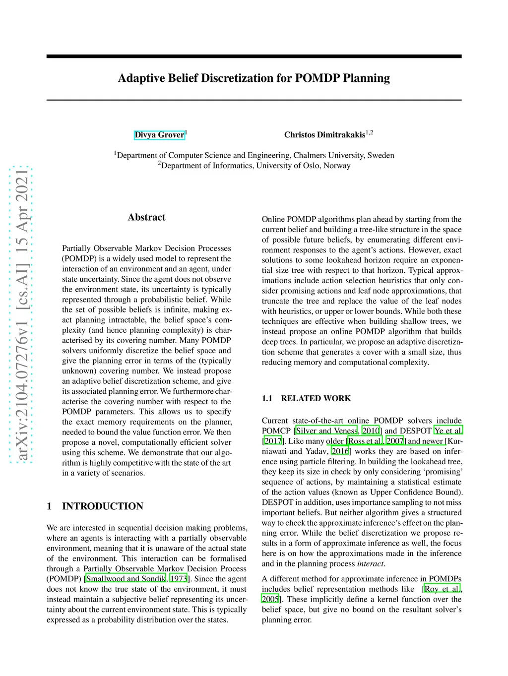 Partially Observable Markov Decision Processes (POMDP) is a widely used model to represent the interaction of an environment and an agent, under state uncertainty. Since the agent does not observe the environment state, its uncertainty is typically represented through a probabilistic belief. While the set of possible beliefs is infinite, making exact planning intractable, the belief space's complexity (and hence planning complexity) is characterized by its covering number. Many POMDP solvers uniformly discretize the belief space and give the planning error in terms of the (typically unknown) covering number. We instead propose an adaptive belief discretization scheme, and give its associated planning error. We furthermore characterize the covering number with respect to the POMDP parameters. This allows us to specify the exact memory requirements on the planner, needed to bound the value function error. We then propose a novel, computationally efficient solver using this scheme. We demonstrate that our algorithm is highly competitive with the state of the art in a variety of scenarios.