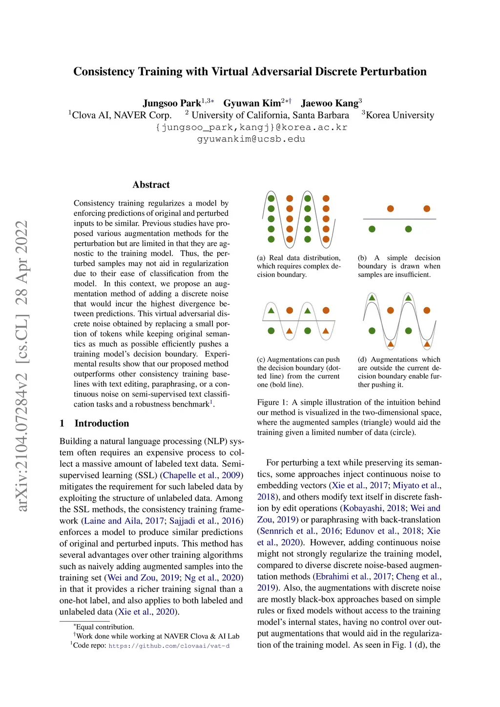 Consistency Training with Virtual Adversarial Discrete Perturbation