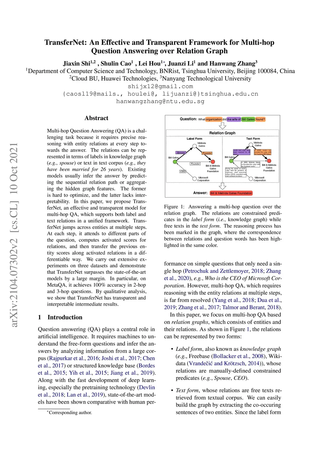TransferNet: An Effective and Transparent Framework for Multi-hop
