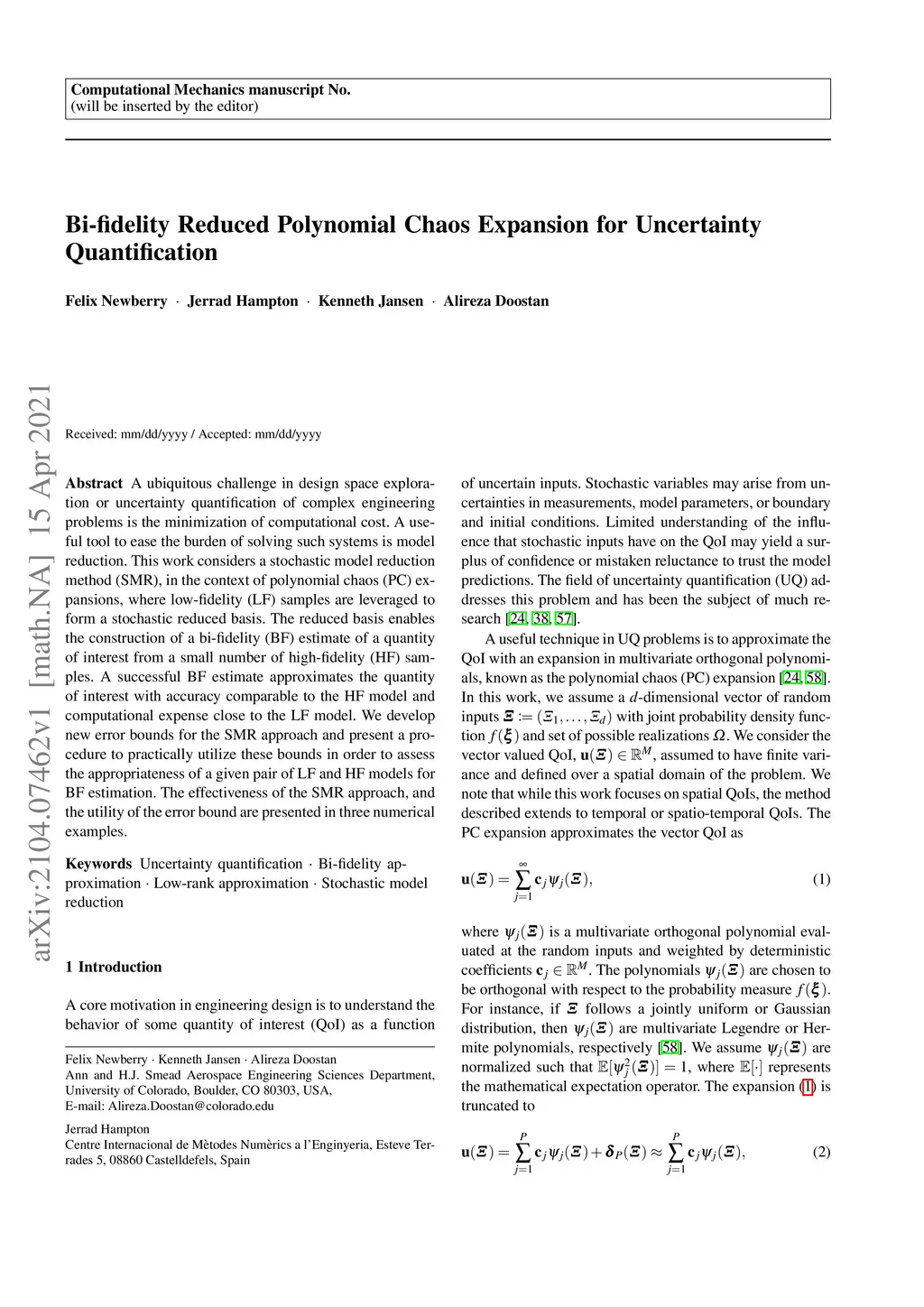 Bi-fidelity Reduced Polynomial Chaos Expansion for Uncertainty
