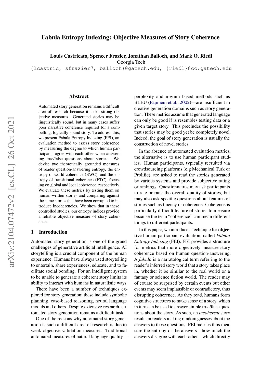 Fabula Entropy Indexing: Objective Measures of Story Coherence