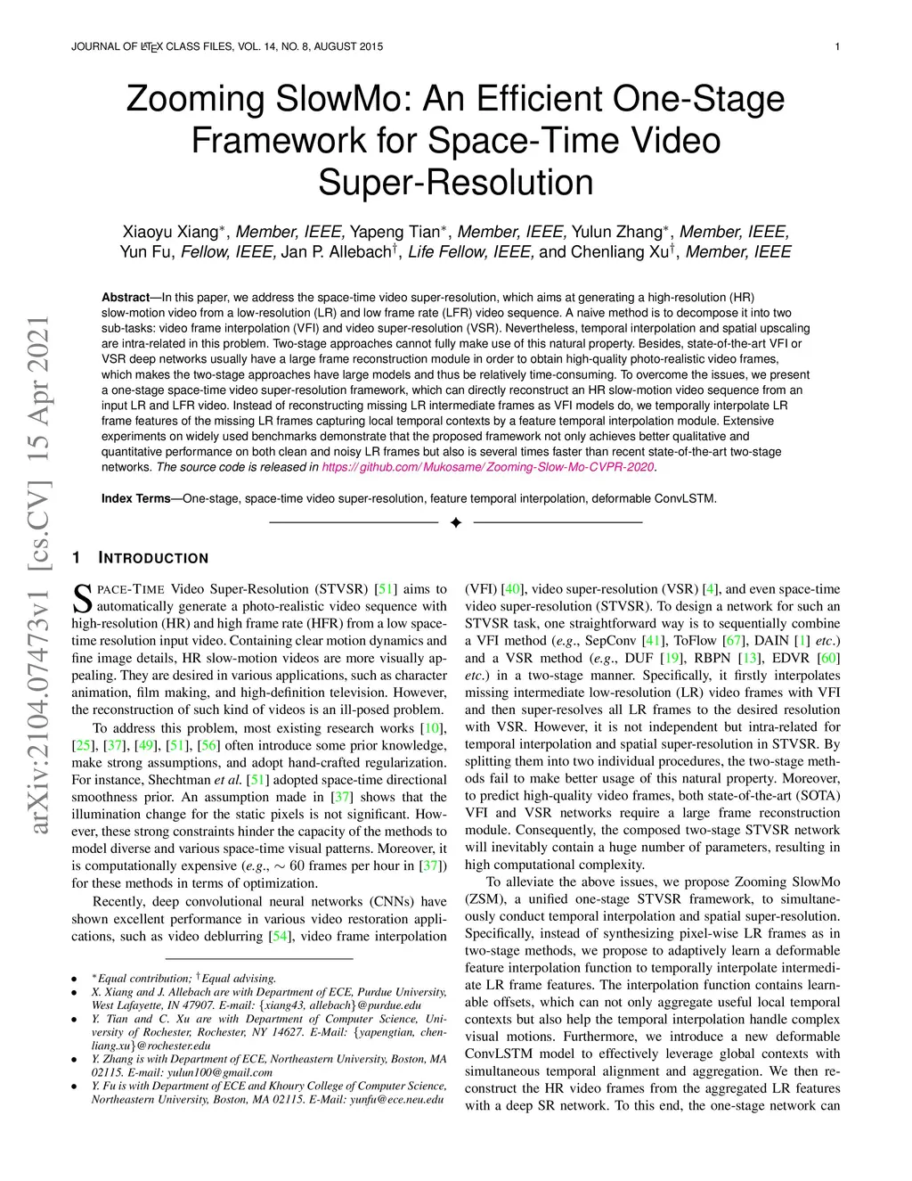 Zooming SlowMo: An Efficient One-Stage Framework for Space-Time Video
