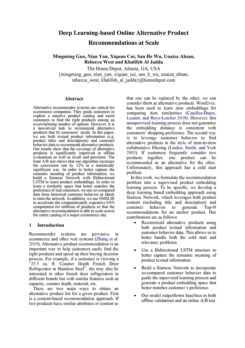 Alternative recommender systems are critical for ecommerce companies. They guide customers to explore a massive product catalog and assist customers to find the right products among an overwhelming number of options. However, it is a non-trivial task to recommend alternative products that fit customer needs. In this paper, we use both textual product information (e.g. product titles and descriptions) and customer behavior data to recommend alternative products. Our results show that the coverage of alternative products is significantly improved in offline evaluations as well as recall and precision. The final A/B test shows that our algorithm increases the conversion rate by 12 percent in a statistically significant way. In order to better capture the semantic meaning of product information, we build a Siamese Network with Bidirectional LSTM to learn product embeddings. In order to learn a similarity space that better matches the preference of real customers, we use co-compared data from historical customer behavior as labels to train the network. In addition, we use NMSLIB to accelerate the computationally expensive kNN computation for millions of products so that the alternative recommendation is able to scale across the entire catalog of a major ecommerce site.