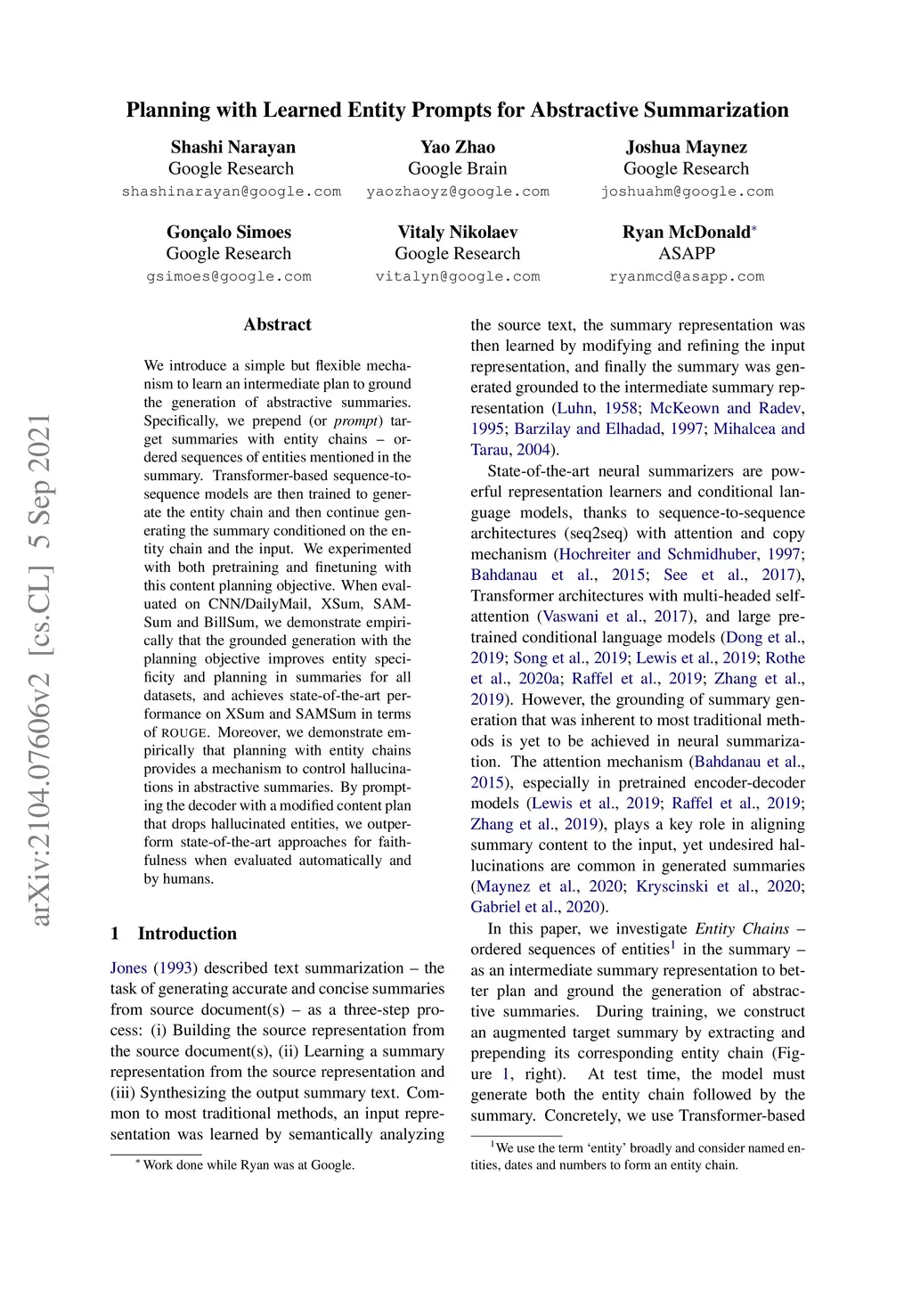 Planning with Learned Entity Prompts for Abstractive Summarization
