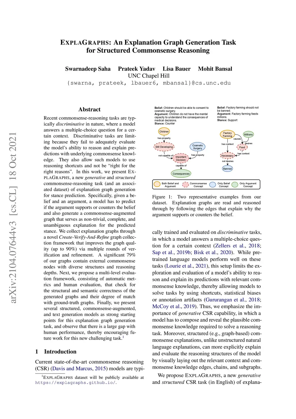 ExplaGraphs: An Explanation Graph Generation Task for Structured