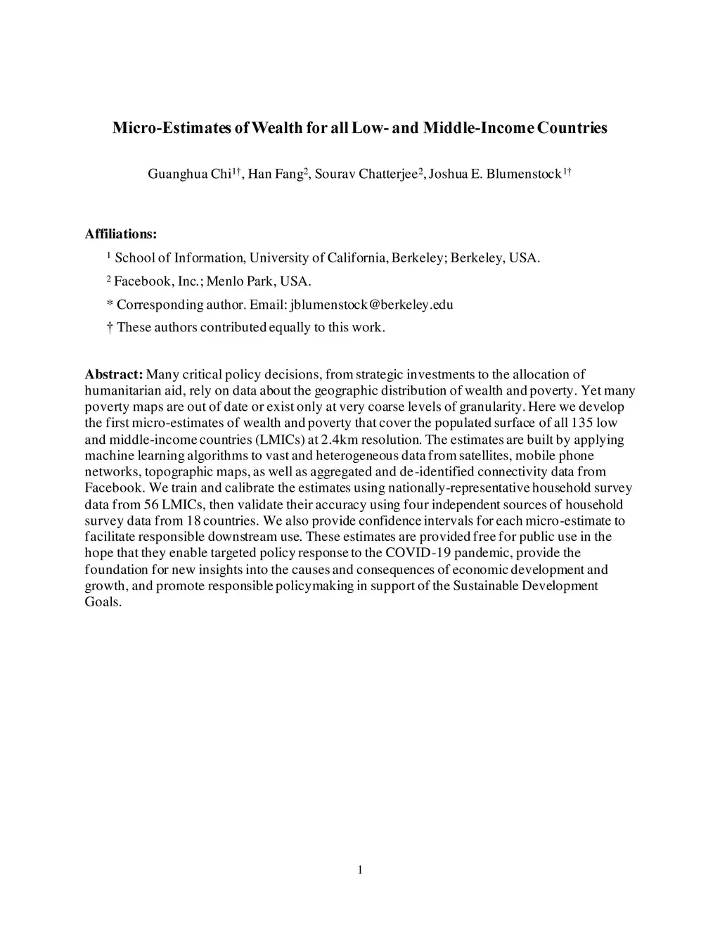 Micro-Estimates of Wealth for all Low- and Middle-Income Countries