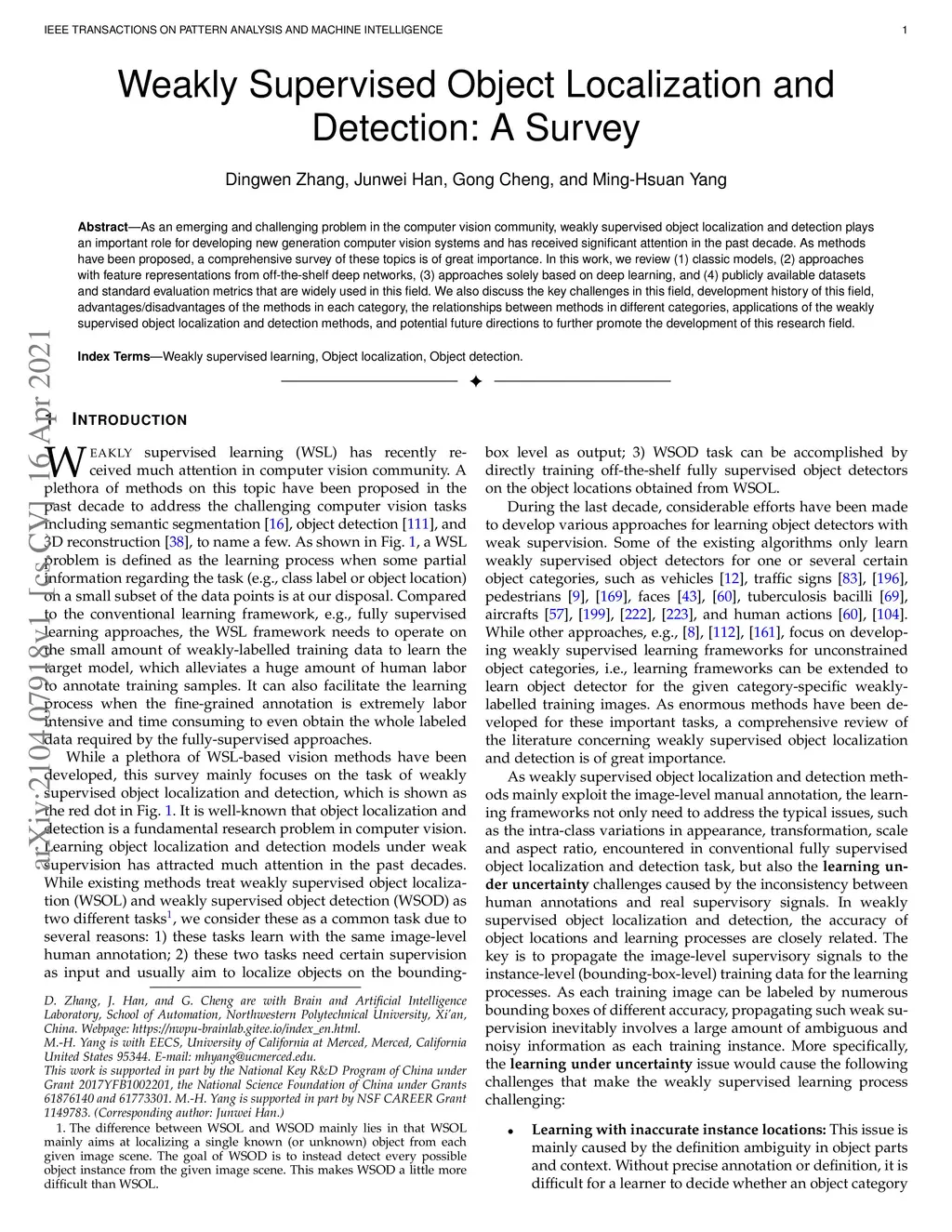 Weakly Supervised Object Localization and Detection: A Survey