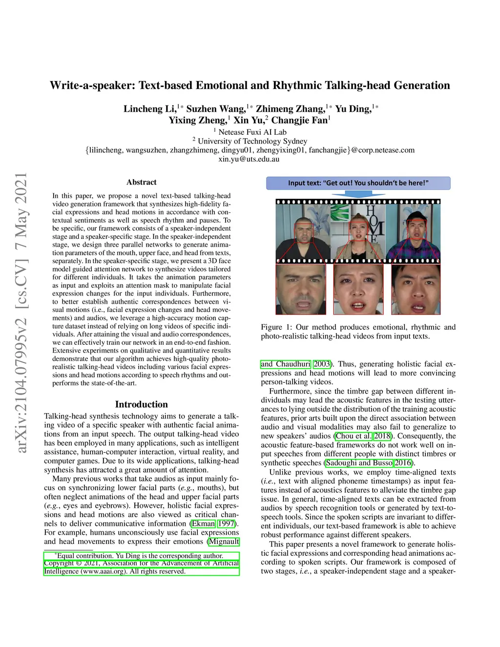 Write-a-speaker: Text-based Emotional and Rhythmic Talking-head Generation