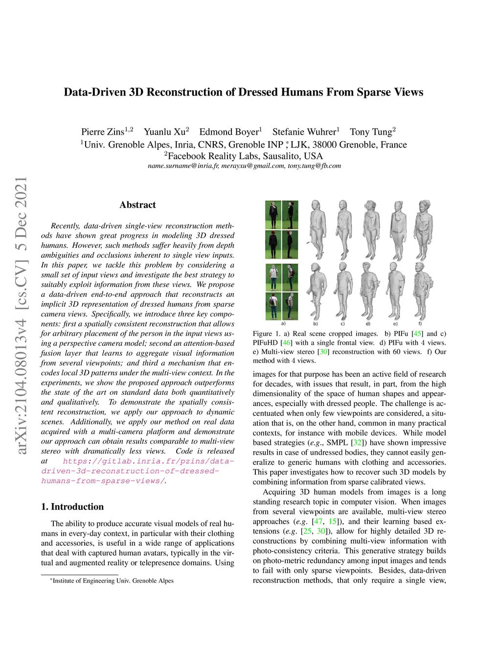 Data-Driven 3D Reconstruction of Dressed Humans From Sparse Views
