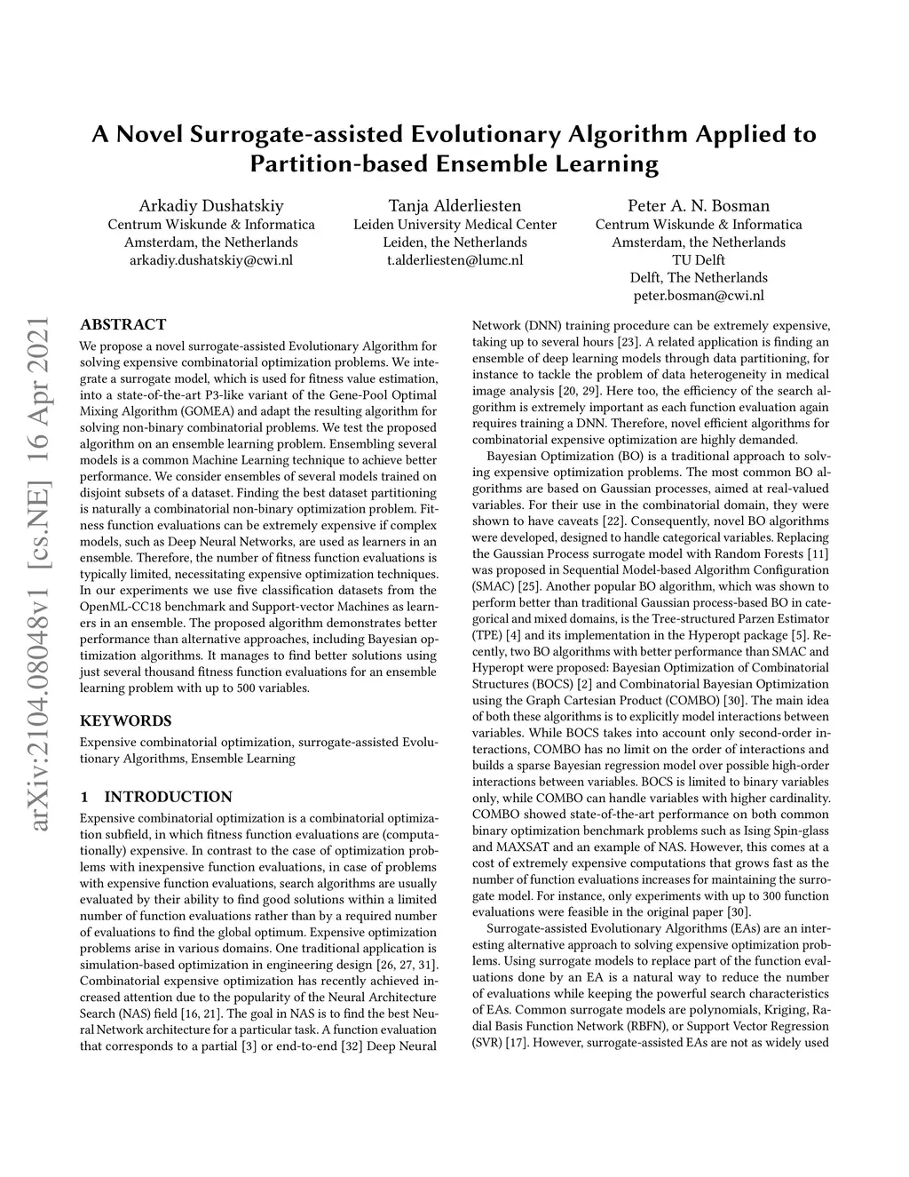 A Novel Surrogate-assisted Evolutionary Algorithm Applied to