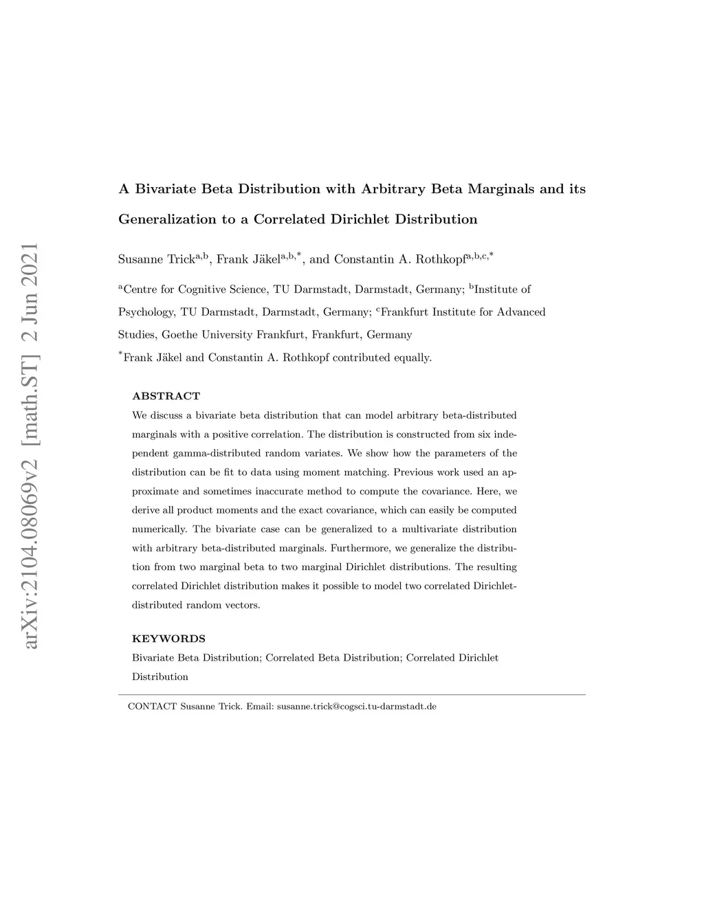 We discuss a bivariate beta distribution that can model arbitrary beta-distributed marginals with a positive correlation. The distribution is constructed from six independent gamma-distributed random variates. We show how the parameters of the distribution can be fit to data using moment matching. Previous work used an approximate and sometimes inaccurate method to compute the covariance. Here, we derive all product moments and the exact covariance, which can easily be computed numerically. The bivariate case can be generalized to a multivariate distribution with arbitrary beta-distributed marginals. Furthermore, we generalize the distribution from two marginal beta to two marginal Dirichlet distributions. The resulting correlated Dirichlet distribution makes it possible to model two correlated Dirichlet-distributed random vectors.