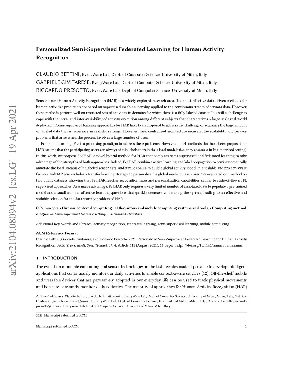 Personalized Semi-Supervised Federated Learning for Human Activity Recognition