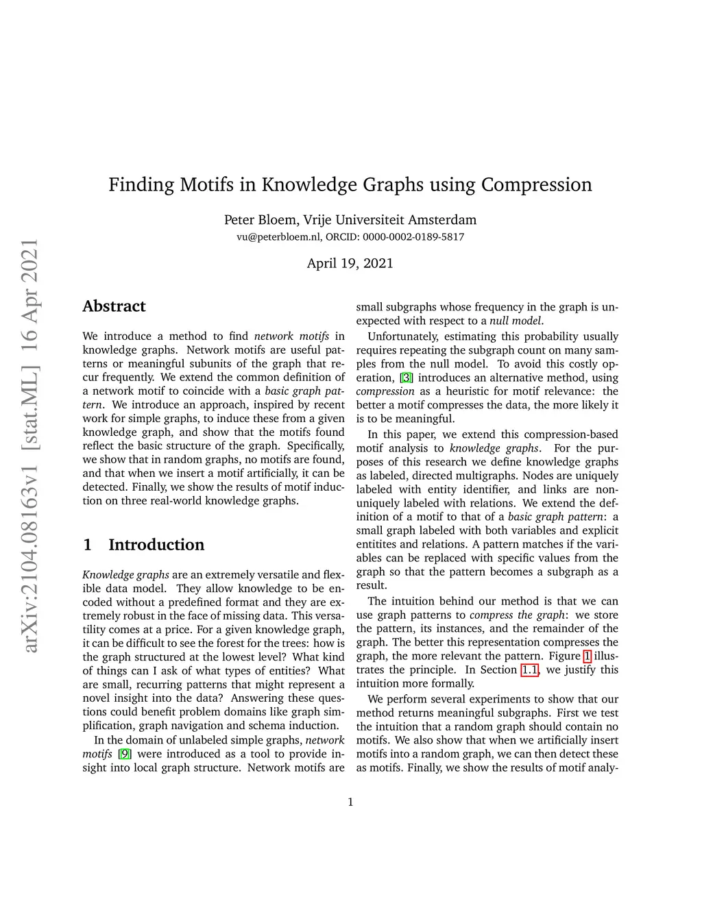 We introduce a method to find network motifs in knowledge graphs. Network motifs are useful patterns or meaningful subunits of the graph that recur frequently. We extend the common definition of a network motif to coincide with a basic graph pattern. We introduce an approach, inspired by recent work for simple graphs, to induce these from a given knowledge graph, and show that the motifs found reflect the basic structure of the graph. Specifically, we show that in random graphs, no motifs are found, and that when we insert a motif artificially, it can be detected. Finally, we show the results of motif induction on three real-world knowledge graphs.